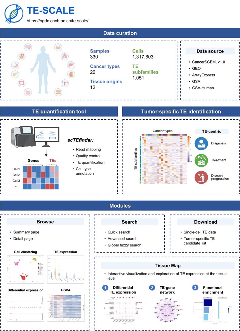 国家生物信息中心发布首个泛癌单细胞转座子数据库TE-SCALE