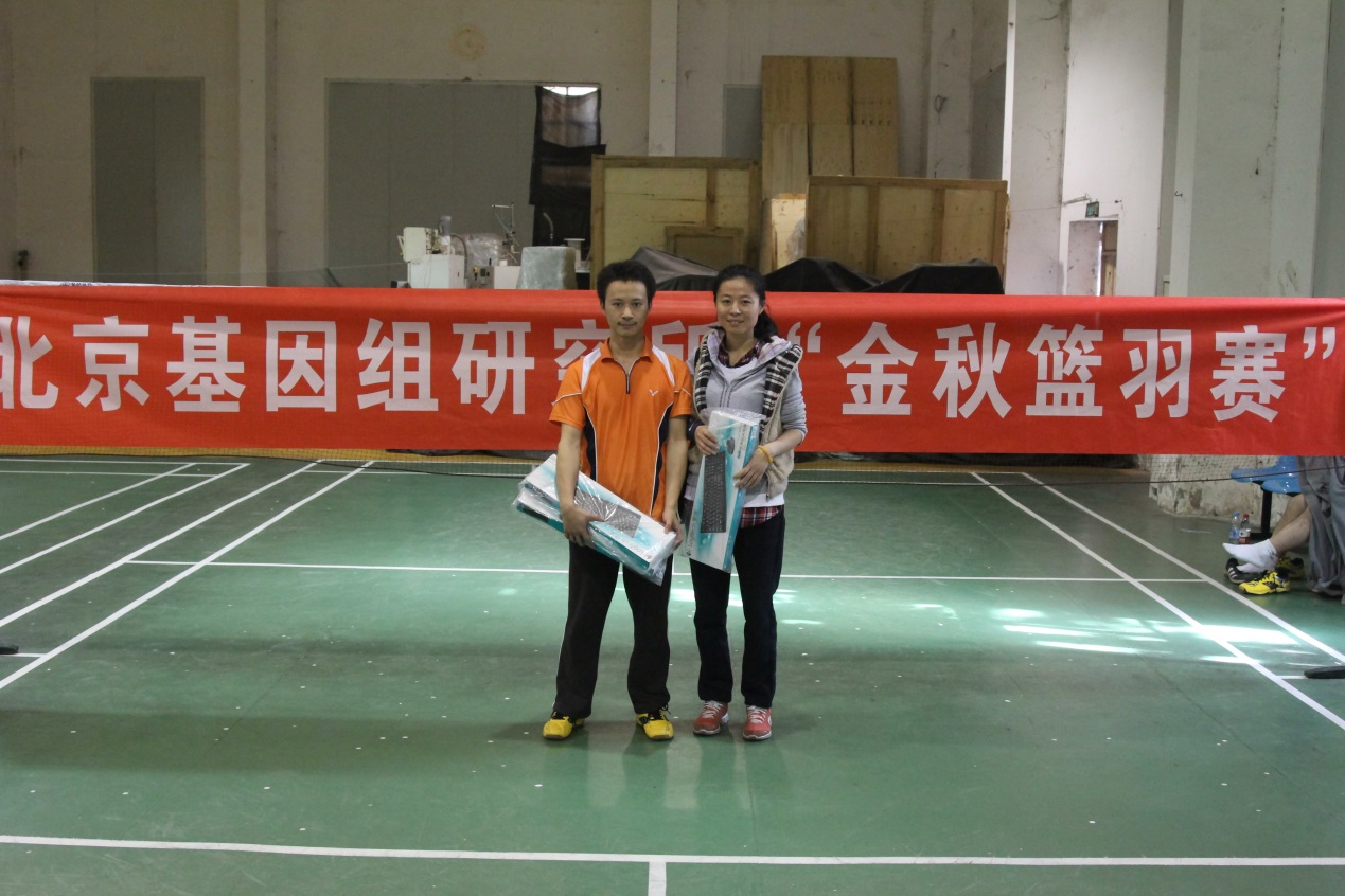 20141026日上午,基因组所“金秋篮羽赛”的羽毛球比赛部分在中国科学院半导体研究所羽毛球馆拉开序幕。比赛从上午九点半开始,一直持续到下午两点结束。经过四个半小时的激烈角逐,邵建明获得男子单打第一名,王冬获得女子单打第一名,邵建明和李艳明获得混双比赛第一名。至此,基因组所2014年度“金秋篮羽赛”圆满落幕。
